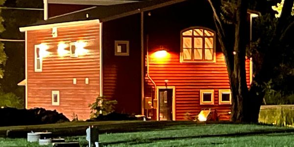 Built in the 1930s, this structure is notable for its oak beam supports, cinder block walls, and curved open span wood trusses. The new renovation preserves the barn within a modern structure. Perfect for retail or small event space.